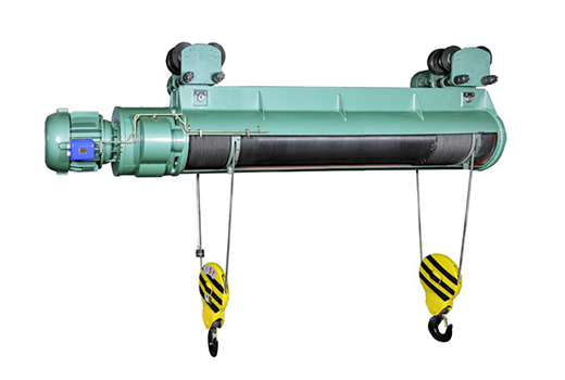 市場上雙鉤雙吊點電動葫蘆所謂雙吊點鋼絲繩電動葫蘆是指有兩個間隔一定距離的吊點,并能同時上升或同時下降的電動葫蘆。現有的雙吊點鋼絲繩電動葫蘆有,在- - 臺鋼絲繩電動葫蘆卷筒兩端各有-套吊鉤滑輪裝置,這種雙吊點電動葫蘆因兩套吊鉤滑輪裝置均由--個卷筒起升或下降,可以保證兩吊點同時升降;